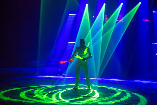 Charles Dubois, fünfzehnjähriger Tempojongleur, begeistert mit seinem rasanten Auftritt. In hohem Tempo wirbelt der junge Mann durch die gesamte Manege und versteht es hervorragend drei, vier und fünf weiße Keulen in vielfältigen Mustern zu manipulieren. Sicher und souverän werden die Requisiten gehandhabt. Im zweiten Teil seines Auftritts versteht er es ausgezeichnet mit bis zu sieben Ringen zu jonglieren. Die abschließenden Touren werden mit per LED-Technik beleuchteten Keulen gearbeitet, während das farblich hervorragend abgestimmte sparsame Manegenlicht an Laser erinnert – formidable.