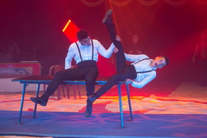 Die Kaskadeur-Nummer der „Speed Boys“ - Enzo Caplot und Charles Dubois – sorgt vor dem Finale noch einmal für einen furiosen Wirbel in der Manege. Die beiden jungen Männer bieten in einer an Rasanz kaum zu überbietenden Abfolge alle relevanten Tricks des Genres. Mit Können und Verve erfolgen Saltos, Pirouetten und Kaskaden. Die erstklassig aufgebaute Darbietung besticht mit Trickreichtum, stimmiger Abfolge der Kaskaden und hohem Tempo.