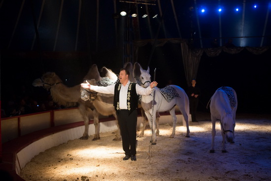 Die erstklassigen Dressurnummern der Familie Spindler bilden das Rückgrat der mitreißenden Show. Zunächst präsentiert Juniorchef Franz Spindler zwei Kamele zusammen mit zwei weißen Araberhengsten in einer harmonischen Dressurfolge. Interessante abwechslungsreiche Figuren werden in rascher Abfolge ausgeführt. Hervorragende Da Capo Steiger der Araber beenden den furiosen Auftritt.