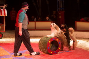 Im zweiten Auftritt sehen wir Edy Laforte mit seiner schwungvollen gearbeiteten Kleintier-Revue. Eine Hauskatze balanciert auf den Schultern des Vorführers und stellt eindrucksvoll ihr Sprungvermögen unter Beweis. Ein halbes Dutzend Hunde unterschiedlicher Rassen und Größe ist eifrig bemüht sein Können voller Spielfreude zu zeigen. Diverse Sprünge führen durch Reifen und über Hürden. Lauf auf einer Rolle, Hinterbeinlauf und aufrollen eines Teppichs sind weitere Elemente der vielseitigen Trickfolge, die im Publikum bestens ankommt.