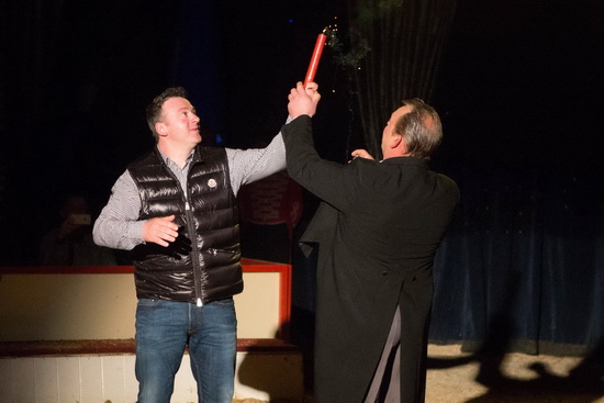 Interaktion mit dem Publikum bestimmt das hervorragend gestaltete Opening von Clown Timmy Barelli. Glockenspiel und Applaustest sorgen sofort für Highend-Stimmung.