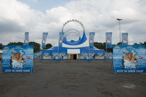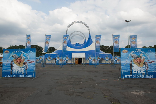 Auf dem Festplatz in Kaiserslautern war der beeindruckende große Circus wie immer in Perfektion aufgebaut. Die eleganten blau-weißen Zeltanlagen, die erstmals beim letztjährigen Weihnachtscircus in Frankfurt eingesetzt wurden, entfalteten ihren hellen Glanz in der Sonne.
