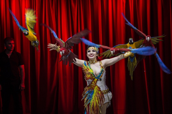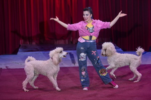 Die beiden Darbietungen mit tierischer Beteiligung sehen weiterhin Laura Urunova in Aktion. Zunächst erstaunen ein Kakadu, fünf Aras und ein halbes Dutzend Sonnensittiche die Besucher. Sie überbringen eine Rose und landen auf dem Kopf eines Zuschauerkindes. Lange und weite Flüge über dem Auditorium sind der faszinierende Abschluss dieses Acts. Pudel verschiedener Größe und ein Border-Collie zeigen sich im zweiten Teil der Show voller Spielfreude und folgen eifrig den Anweisungen ihrer Vorführerin.