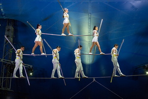 Das finale Highlight der abwechslungsreichen Spielfolge bietet die Truppe Robles auf dem Hochseil. Die vier Herren und drei Damen zeigen ein umfassendes Repertoire hochkarätiger Tricks in der Circus-Kuppel. Doppeltes Zwei-Mann-Hoch, Bocksprung, Seil springen, Sprung über einen und zwei sitzende Partner und 3er Pyramide auf Fahrrädern werden u.a. höchst souverän ausgeführt. Mit einer formidablen Siebener-Pyramide erreicht der Auftritt seinen umjubelten Höhepunkt.