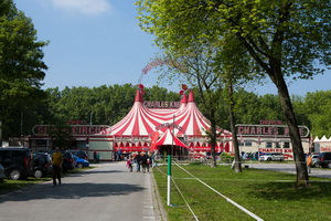 In Duisburg gastieren die Circusse auf einem Parkplatz unmittelbar vor der Fußballarena der Stadt. Auf dem allseitig bestens einsehbaren Gelände präsentierte sich der Circus in bestechender Optik seinen zahlreichen Besuchern.