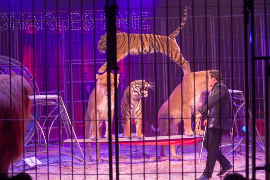 Der zweite Teil der Show im Zirkus Charles Knie beginnt in dieser Saison nun wieder mit einer Raubtierdarbietung. Tommy Dieck junior bringt fünf Tiger, zwei Liger und zwei weiße Löwen in die Gittermanege und mit einer Pyramide aller Tiere startet die umfangreiche Trickfolge. Rollover dreier Tiger sowie Hochsitzer in der Manege und am Platz sind weitere Elemente der Nummer. Auf einem Riesenrad rollen ein Liger, innen, und ein Tiger, außen, durch die Manege. Sprünge von zwei Tigern über eine Bar aus Tiger und weißen Löwen schließen sich an. Einen Scheinangriff eines Tigers pariert der Dompteur mit einem direkt anschließenden, sehr gut ausgeführten Rückwärtssteiger. Ein weiterer Hinterbeinläufer eines Tigers und Barrierensprünge aller Tiere bei Abgang vervollständigen samt einer Schmuse-Kuss-Szene diese Dressurnummer.