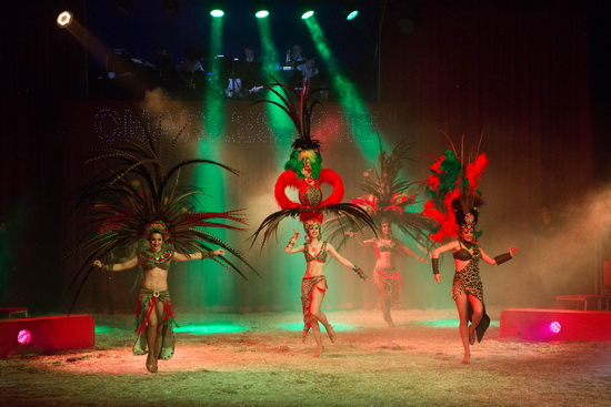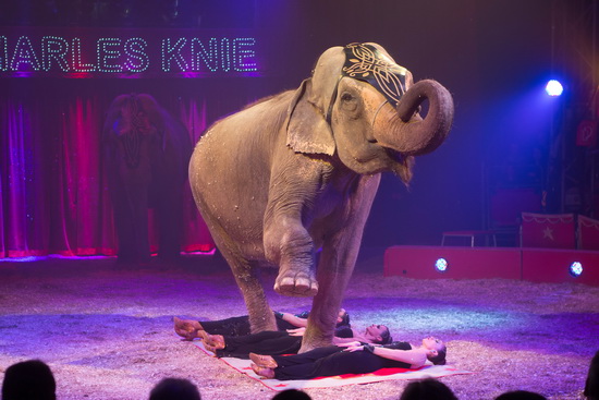 Finalnummer und Höhepunkt des Programms ist weiterhin die ausgezeichnete Elefanten-Dressur, die von Elvis Errani gekonnt präsentiert wird. Das Ballett stimmt in exotischen Kostümen, jede Tänzerin trägt einen individuellen und höchst aufwändig gestalteten Kopfputz, auf die Darbietung ein. Effektvoll und temporeich reihen sich die Abläufe, zu denen der Vorführer die Tiere nur mittels seiner Stimme dirigiert, aneinander. Neu im Repertoire sind die Tricks am Schleuderbrett mit denen die Elefanten den Vorführer auf ihre Rücken katapultieren. Besondere Publikumswirksamkeit beinhaltet immer wieder der Schlusstrick, den Elvis Errani vom Gradin aus ausführen lässt. Vollkommen selbständig agiert Elefant Baby. Er überschreitet die Damen Errani und verharrt dekorativ auf zwei Beinen balancierend über den Figurantinnen.