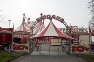 Im nordhessischen Korbach war der Circus für dreitägiges Gastspiel auf einem innerstädtischen Platz aufgebaut. Der knapp bemessene Raum war kaum in der Lage das umfangreiche Material des Circus aufzunehmen. Aus diesem Grund musste auf das Vorzelt verzichtet werden und die beiden dekorativ gestalteten Verkaufswagen der Circusrestauration fanden unmittelbar hinter dem Fassadenzaun ihren Platz. Auf der linken und hinteren Platzseite sind die Ställe und Freigehege der Pferde, Kamele, Lamas und Rinder angeordnet. Rechts wurden die Wohnwagen sowie die zahlreichen Zugmaschinen und Materialtransporter aufgefahren.