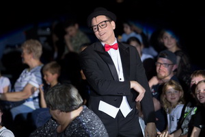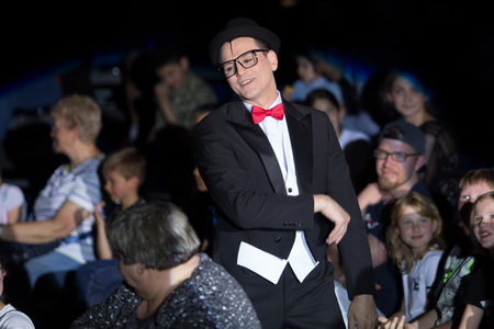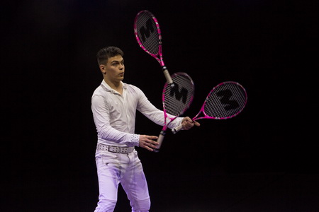 Tempo geladen auch die folgende Darbietung von Jimmy Navratil. Der jugendliche Jongleur rockt zuerst mit Fußbällen und anschließend mit Tennisschlägern in einem rasanten Wirbel das Zelt. Die vielseitigen Routinen erfolgen sehr präzise und speziell die Tennisschläger werden in höchstem Tempo manipuliert.