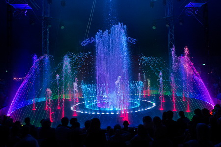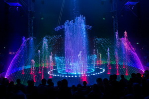 Berauschende Wasserspiele unterlegt mit perfekt abgestimmten Licht und vollem Sound demonstrieren vor der Pause die Leistungsfähigkeit der technischen Ausstattung. Bis hoch in die Kuppel reichen die Fontänen die, aus zahllosen, auf der gesamten Bühne verteilten Düsen austreten.