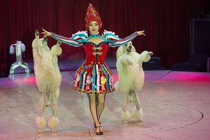 Die beiden tierischen Darbietungen präsentiert Laura Urunova. Fünf Aras, ein Kakadu und gut ein halbes Dutzend Sonnensittiche begeistern mit ihren Flugkünsten die Besucher. Sie überbringen eine Rose, fliegen durch Ringe die Logengäste emporhalten oder landen auf Händen und Armen von Kindern. Lange und weite Flüge über dem Zuschauerraum sind der gelungene Höhepunkt der Darbietung. Im zweiten Programmteil erleben wir die Tierlehrerin mit einer quirligen Hundemeute. Sieben Pudel und ein Border-Collie lassen ihrer Spielfreude freien Lauf und sind eifrig dabei ihr Sprungvermögen sowie verschiedene Hinterbeinläufe zu zeigen.