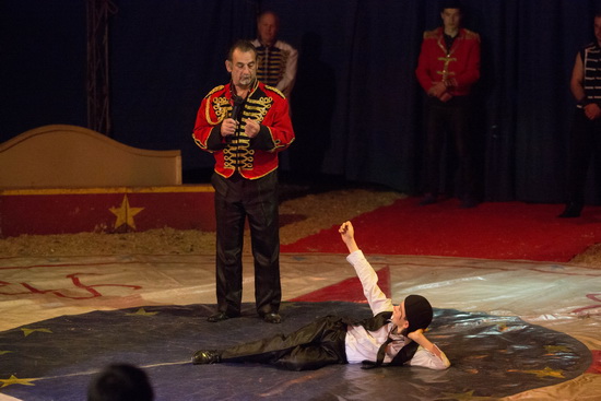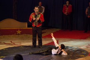 Wortgewaltig kündigt Direktor Simon Dubois den Auftritt der Clowns an und es erscheint - „Cappucino“, der elfjährige Enkel des Chefs. Schwungvoll gehen die beiden zu Werke; der Clown soll die Manege reinigen – was natürlich nicht geschieht – und wortgewaltig versucht der Direktor immer wieder ihn zu motivieren. Unter lautem und lebhaften mitgehen der zahlreichen Kinder im Publikum läuft der „Kampf“ in der Manege ab, stets vom viele Buhrufe provozierenden Direktor angestachelt.