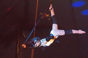 Der zweite Programmteil beginnt mit der rasanten Vertikalseil-Darbietung von Miss Bettina. Ein breites Spektrum gängiger Tricks des Genres wird in flotter Folge geboten. Rasant gedrehte Wirbel verleihen dem Auftritt Dynamik.