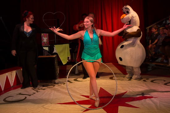 Jasmin Dornseiff ist als „Elsa“ mit einer Hula Hoop Darbietung zu erleben. Natürlich darf auch Schneemann „Olaf“ nicht fehlen und Lilly begleitet den Auftritt mit gekonntem Live-Gesang. Vielseitige Abläufe des Genres werden charmant geboten.