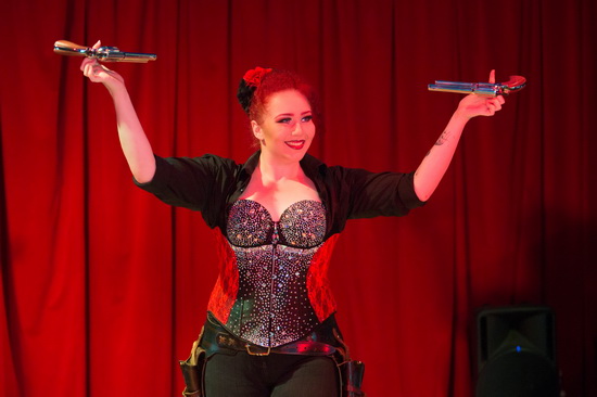 Miss Lilly präsentiert eine Western-Phantasie. Zunächst manipuliert die sympathische junge Frau zwei Original Colts in einer gekonnt vorgetragenen Jonglage. Anschließend hantiert sie geschickt mit zwei laut knallenden Bull-Peitschen. Lasso-Spiele bestimmen den weiteren Verlauf des Auftritts.