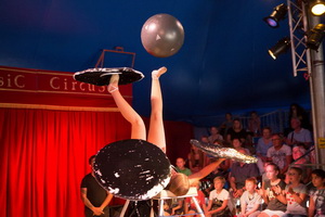 In der nächsten Show sehen wir die vielseitige Artistin mit ihrer Antipoden-Darbietung. Auf einer hohen Trinka liegend werden die ersten Touren mit kleinen Teppichen absolviert. Bis zu vier rotieren auf Händen und Füßen der jungen Frau. Der zweite Teil des Auftritts wird mit Gymnastik-Bällen bestritten. Geschickt werden diese über die Extremitäten kreisen lassen. Mit einem Original-Trick – die Bälle werden mit den Füßen in einer erhöhten Röhre platziert und kehren durch diese wieder zur Artistin zurück – findet die Darbietung ihren gelungenen Höhepunkt und Abschluss.