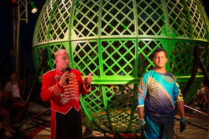 Direktor Althoff Karl Köllner begrüßt wortgewaltig sein Publikum und führt als souveräner Sprechstallmeister durch die Show, seine Artisten dabei stets in rechte Licht rückend.
