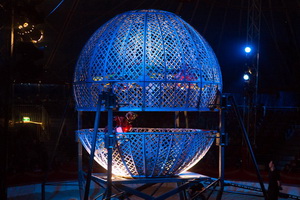 „The Crazy Diorios“ sind mit ihrem Splitting Globe als Pausennummer platziert. Nach und nach steigert sich die Zahl der Fahrer in der kleinen Kugel. Als schließlich alle vier Artisten kreisen öffnet sich der Globe, das untere Drittel der Konstruktion wird um etwa einen halben Meter abgesenkt, während drei Fahrer im oberen Teil ihre Bahnen ziehen. Gleich zu Beginn der Darbietung verkündet die Ansage, dass wir hier die weltweit einzige weibliche Motorradartistin in einer Motorradkugel sehen werden. Namentlich genannt werden allerdings nur die männlichen Kollegen.