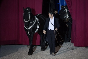 Im zweiten Programmteil folgt mit der Freiheitsdressur von acht Friesen, die gleichfalls vom dänischen Circus Arena kommen, die zweite equestrische Darbietung, die in einem gekonnten Steiger ihren Höhepunkt findet.