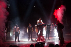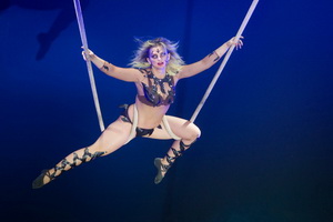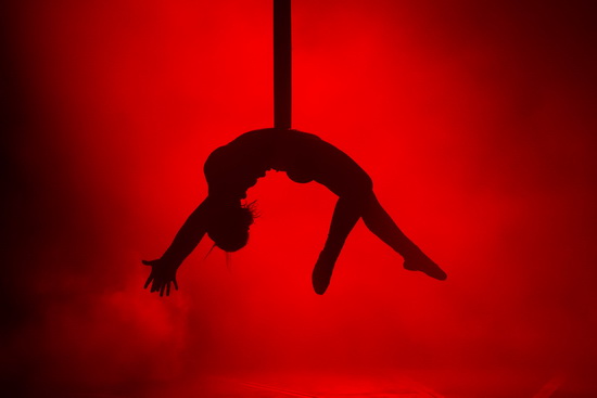 Eine Frauengestalt windet sich im roten Dämmerschein ekstatisch auf einem Bett, dann flammen die Scheinwerfer auf und die Artistin startet ihre Arbeit am Schwungseil. Routiniert erfolgen relevante Tricks des Genres und die diversen Abfaller sorgen für schreckhafte Aufschreie auf den Rängen.