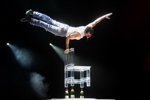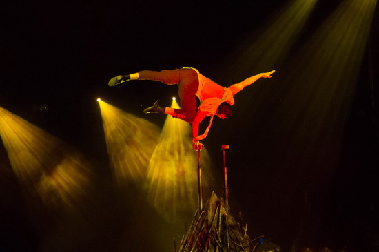 René Sperlich ist mit seinen beiden attraktiven Handstanddarbietung zu erleben. Im ersten Teil der Show präsentiert er seinen Flaschenstuhl mit den modernen, aufwändigen Acryl-Requisiten. Die Equilibristik auf der Spitze einer Pyramide wurde optisch verändert und mehr dem Thema der Show angepasst. In Begleitung von Fackelträgern wankt eine an ein Joch gebundene Gestalt heran und gelangt auf die Spitze eines Scheiterhaufens – zu dem die Pyramide nun gestaltet wurde. Helle Flammen lodern aus ihrem Fuß hervor, dann beginnt der Artist seine Evolutionen.