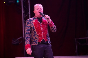 Mademoiselle Nika versteht es, sich am Ringtrapez charmant in Szene zu setzen. Kraftvoll werden die verschiedenen Halteposen mit fließend ausgeführten Übergängen elegant verbunden. Mit scheinbarer Leichtigkeit schwebt die Künstlerin im weiten Raum der Kuppel.