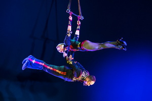 Die beiden exzellenten Darbietungen des Duo Paschenko kommen auch in diesem Rahmen bestens an. Die kraftvolle Hand-auf-Hand Darbietung bietet eine Vielzahl hochkarätiger Tricks und wird genauso souverän dargeboten wie die nicht minder anspruchsvolle Arbeit an den Strapaten.