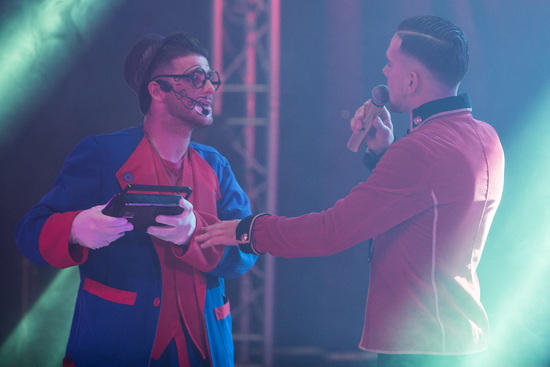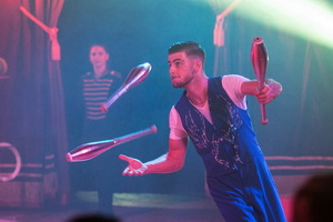 Lenny Krosemann überzeugt mit variantenreichen und sicher vorgetragenen Tempo-Jonglagen. Er beginnt seinen Auftritt mit Ringen, von denen er bis zu acht zur gleichen Zeit in der Luft hält. Vier Bälle sind die folgenden Requisiten, dann folgen abwechslungsreiche Routinen mit drei, vier und fünf Keulen. Den effektvollen Abschluss der Darbietung gestaltet der junge Mann mittels per LED-Technik bunt leuchtenden Keulen.
