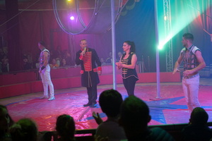 Direktor Sacha Krosemann übernimmt die Aufgabe des „Monsieur Loyal“, begrüßt sein Publikum und gibt die Manege für die erste Darbietung frei.