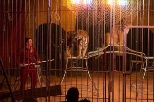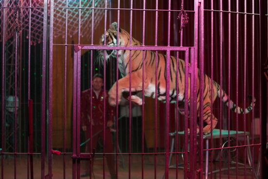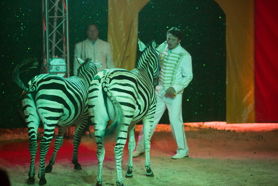 Mit einer Raubtierdressur von Christian Prein junior nimmt die Programmfolge ihren Beginn. Seit rund vier Wochen verfügt der Cirque Fabio Zavatta über eine zweite Dressurgruppe mit vier jungen Löwen. Zur Zeit arbeiten die beiden Gruppen alternierend und wir sehen zwei Tiger und eine Löwin im Zentralkäfig. Gekonnt leitet der Dompteur die Abfolge, die eine Pyramide, verschiedene Sprünge, abliegen, Rollover und einen Balkenlauf enthält. Natürlich darf auch ein Scheinangriff in dem Repertoir heutzutage gängiger Tricks nicht fehlen.
