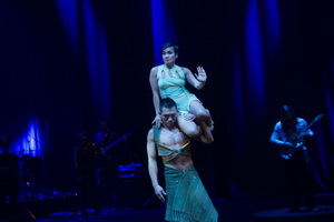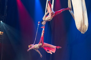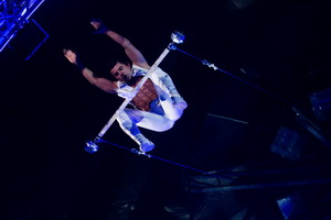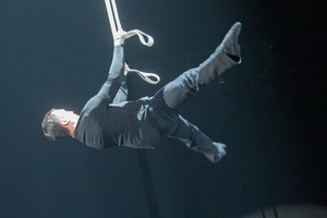 Eine weitere Luftdarbietung arbeitet Darkan an den Strapaten. Außergewöhnlich getaltet, beinhaltet der Auftritt zunächst viele tänzerische Elemente auf der Bühne. Im Verlauf der Nummer steigern sich beständig Anteil der Flüge und Schwierigkeitsgrad der Tricks.