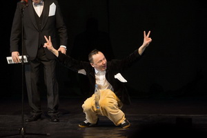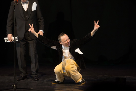 Andrej Jigalov bringt zwei seiner bekannten Entrees im Rahmen dieses Programms. Im charakteristischen Outfit des abgerissenen kleinen Underdog möchte er, der geborene Looser, es seinem (neuen) Partner gleichtun. Dieser Bon Vivant wird in seinem Konzert gestört und die beiden bekriegen sich in einer Wasserschlacht.