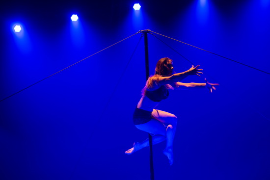 Larissa Kastein versteht es immer wieder aufs Neue mit ihrem vor sinnlicher Erotik knisterndem Pole Dance das Publikum zu fesseln. Im surrealen blauen Licht beweist die junge Frau bei ihrem kraftraubenden Aktionen am Mast eine enorme Körperbeherrschung.