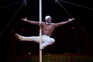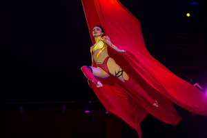 Die bestens bekannte Darbietung von Alexandra Gerbey an den Strapatentüchern und die Magic Show von Dennis Rush sind in der Show des Great Christmas Circus unverändert zu sehen.