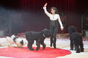 Gina Giovannis, viele Jahre als brillante Handstandequilibristin in allen namhaften Circussen zu erleben, bringt nun vier quirlige Hunde in die Manege. Mit Freude am Spiel und voller Eifer zeigen sie ihr erlerntes Können. Voller Kraft und Temperament werden die verschiedenen Sprünge ausgeführt und eine Rutschbahn genutzt.
