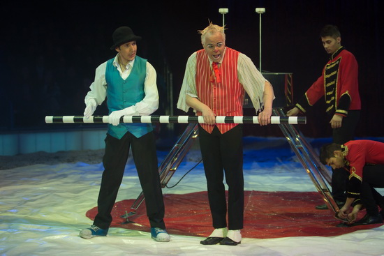 Die beiden Letzteren sind zunächst mit einem komischen Jonglage-Act zu erleben. „Chiccolos“ hantiert erst mit einem Eisengewicht, ehe er mit Bällen und Keulen jongliert. Während er den Applaus auf sich bezieht, gilt er dem im Hintergrund temporeich agierenden Jongleur. Zusammen mit Alexandra Gerbey agiert Erik Munoz hinter einem Paravant pantomimisch. Im Zusammenspiel mit Francesco Topolino wird die „Schwebende Jungfrau“ vorgeführt und eine Stange – mit überraschendem Ergebnis – durchgesägt. Clown Francesco tritt als Magier in Erscheinung, der beim „wegzaubern“ von Kaninchen mit der Tücke des Objektes zu kämpfen hat und kleine in riesige Hasen verwandelt.