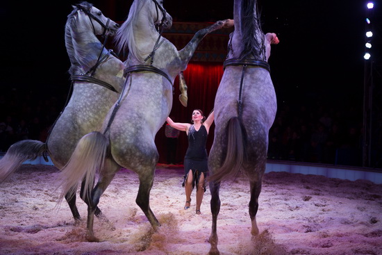 Selbstverständlich sind einige der hauseigenen erstklassigen Dressurdarbietungen in dieser Weihnachts-Show zu bewundern. So präsentiert Manuel Frank drei prächtige Steppenkamele in einer abwechslungsreichen Laufarbeit im Zusammenspiel mit drei Dromedaren.