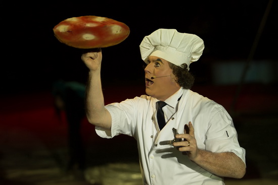 Clown Jimmy Folco jongliert mit drei „Pizzen“. Die folgenden Routinen werden mit Gabeln und einer großen Kartoffel absolviert. Eier, Kochtopf und Gummihuhn sind weitere Utensilien, die in seinem ersten Auftritt zum Einsatz kommen. Wenig später trägt der Clown mit einem, sehr gewitzt agierenden, etwa neunjährigen Jungen aus dem Publikum einen Wettstreit im Wasser spucken aus. Sein Kopfballspiel mit Luftballons mit den Zuschauern wird von der strengen Stallmeisterin immer wieder unterbunden. Vier Zuschauer bemühen sich nach Kräften, den Anforderungen des Clowns zu entsprechen und eine cool agierende Rockband zu bilden. Als „starker Mann“ demonstriert der Clown seine Kräfte – auch wenn der Auftritt mit „Kopfschmerzen“ endet. Schließlich versucht sich der Clown als Magier.