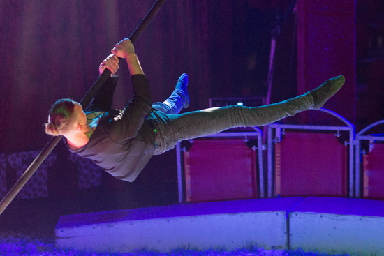Mit zwei Darbietungen komplettiert der ukrainische Artist Anton die Nummernfolge. Zunächst sehen wir seine höchst umfangreiche Arbeit am Flying Pole. Die Vielzahl anspruchsvoller und kräftezehrender Tricks wird mit großer Selbstverständlichkeit in erstklassiger Ausführung vorgetragen. Als finale Darbietung zeigt Anton seinen Act an Bungee Seilen. Die Trickfolge enthält eine Reihe Abläufe die man von Strapaten-Darbietungen kennt, doch die elastischen Bänder erweitern das Spektrum um dynamische raumgreifende Aktionen.