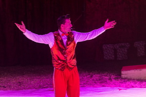 Juniorchef Jeffrey Freiwald heißt sein Publikum herzlich willkommen und gibt die Manege für die erste Darbietung frei. Die weiteren Ansagen kommen, mit einem professionellen Sprecher aufgezeichnet, vom Band.