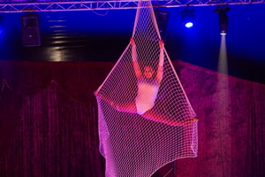 In einer weiteren Darbietung präsentiert Jennifer ihr Können am Luftnetz hoch in der Kuppel des Chapiteau.