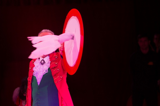 Unterstützt durch Ballett und Gesang bietet das Duo Hasan seine Adagio Akrobatik vor der Pause dar. Vielseitige Figuren werden in dem ruhigen Ablauf gekonnt ausgeführt.