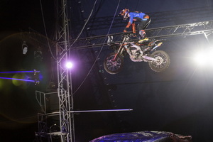 Zu guter Letzt wird es laut und wild im Weihnachtscircus und den Sound dominieren E-Guitarre und Bass. Die Motorrad-Artisten der „Luftman Extreme FMX“ sorgen für den spektakulären Höhepunkt der Show. Die steile Absprungrampe wird im Haupteingang in Stellung gebracht, die Gäste in der Mittelloge müssen ihre Plätze verlassen, dann fliegen die verwegenen Stuntmen in riskanter Weise quer durch die Kuppel und landen auf einem riesiges rampenartigen Luftkissen vor dem Artisteneingang. Dabei führen sie verwegene Tricks aus. Beispielsweise werden die Füße über den Lenker gelegt, man fliegt frei - nur die Hände berühren Lenker oder Sattel - neben und über der Maschine, beide Beine sind auf derselben Seite und das Motorrad wird in der Luft gar völlig losgelassen. Nach jeder geglückten Landung brandet der Jubel des begeisterten Publikums durch das Zelt. Den Höhepunkt des Acts markiert ein fulminanter Rückwärtssalto mitsamt der Maschine.