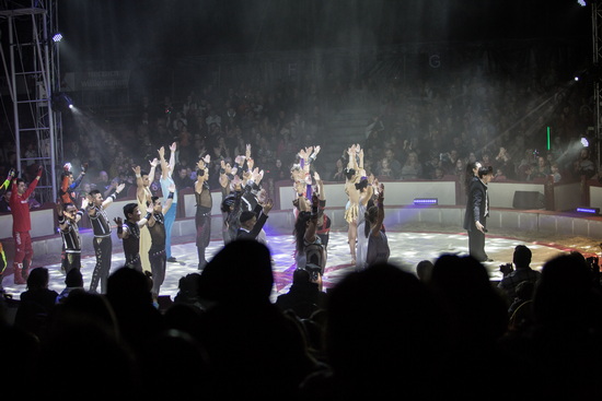 Sehr viele Ballettszenen, die durchaus abwechslungsreich sind und gekonnt ausgeführt werden, und Gesang, wobei besonders die weibliche Stimme hervortritt, bestimmen besonders im ersten Teil die Show. Infolgedessen wird der Charakter der Circusvorstellung – basierend auf dem Dreiklang aus Tieren, Clowns und Akrobaten - sehr überlagert und verdrängt. Die Produktion erscheint mehr wie als Revue mit akrobatischen Einlagen. Völlig deplatziert ist dann die Ankündigung von Sängerin Lilly, wonach „unsere Regisseurin Anett Simmen eine tolle Aktion in Gang gesetzt hat, an der wir uns nun alle beteiligen – wir alle singen nun gemeinsam ein Lied für den Frieden in der Welt“. Politisch motivierte Aktionen, welchen Inhalts auch immer, haben, so unsere Überzeugung, im Rahmen einer solchen Veranstaltung nichts zu suchen.