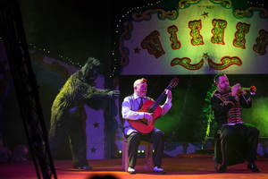 Im großen Entrée der „Los Claudios“ geht es lebhaft zur Sache. Flott folgen die Gags aufeinander und einiger Klamauk wechselt mit sehr viel gekonnt gespielter Musik. Der „große Gorilla“, der das musizieren einige Male unterbricht, lässt die zahlreichen kleinen Besucher eifrig und lautstark mitgehen.