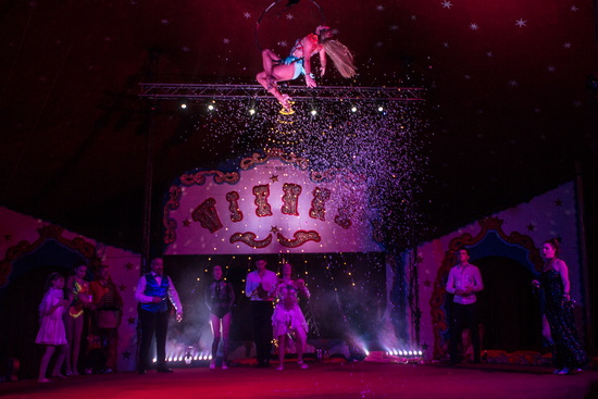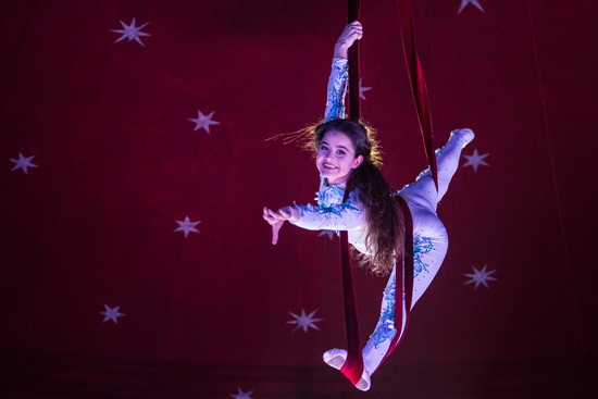 Selena Cannone-Chaves, zwölfjährige Tochter des Hauses, hat eine harmonische Darbietung an den Strapaten einstudiert, die mit viel Spielfreude und extrem ausdrucksstark präsentiert wird. Gekonnt und sicher arbeitet die Nachwuchsartistin die unterschiedlichen Tricks.