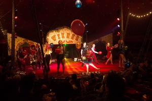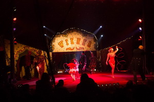 Eine gemütliche Atmosphäre empfängt die Besucher im innen roten Chapiteau. Vier Tribünenwagen mit fest montierten Gradinreihen sowie üppig und kunstvoll verzierte Logen stehen für die Besucher bereit. Der große Artisteneingang, mit orientalisch inspirierten Dekor üppig verziert, beherrscht den hinteren Zeltteil. Er wird vom Verkaufswagen der Circusrestauration flankiert.
