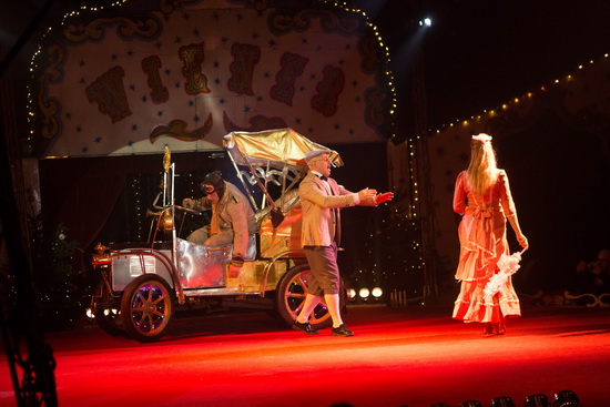 Mit einem schwungvollen Charivari nimmt die Show ihren Beginn. Bunte Bänder werden geschwungen, Jongleure und Einradfahrer erobern die Bühne und die Clowns sind ebenfalls involviert. Direktor Ricky Cannone begrüßt die Besucher und gibt die Bühne für die erste Darbietung frei.