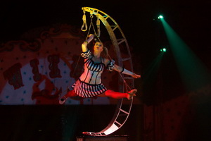 Ihre elegante Kür in der Kuppel des Chapiteau präsentiert Denise Chaves-Cannone nun an einem Kronleuchter. Im Zusammenspiel mit ihrem Mann, der das Geschehen mit einem live gesungenen romantischen italienischen Lied begleitet, begeistert die charmante junge Frau ihre Zuschauer. Elegant und spielerisch leicht wirkend erfolgt die umfangreiche Trickfolge in perfekter Abstimmung mit der Musik. Ein Gänsehaut-Moment par excellence - wunderbar!