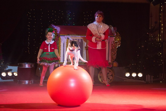 Der Weihnachtsmann und seine Gehilfen – Lionel Chaves mit seinen Assistentinnen – präsentieren zu Beginn des zweiten Programmteils eine muntere Hunderevue. Die quicklebendigen Jack Russell Terrier beherrschen ein breites Repertoire. Sie überspringen hohe Hürden, laufen auf einer Rolle, zeigen Rollover und balancieren auf einem Gymnastikball. Als Zofe kostümiert schiebt ein Hund einen weiteren im Kinderwagen und zwei „Paare“ tanzen in Sambakostümen auf der Bühne.